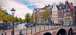 L'albergo che avevo scelto era sontuoso anche se non moderno, si chiamava Amstel come il fiume che attraversa Amsterdam e sul quale le mie finestre si affacciavano. Era frequente e normale veder passare delle canoe o delle piccole imbarcazioni. E mi ricordo che era un bell'albergo, confortevole, e si pranzava in terrazza con vista sul fiume. E che feci una delle mie figuracce peggiori! Al cameriere che mi porgeva il menù dei dolci scritto in inglese, che non so, indicai una voce a caso. Mi guardò esterrefatto e in qualche modo mi chiese una conferma che diedi: non so cosa c'era scritto, ma iniziò una lunga sequela di dolci e dolcetti di tutti i tipi che io, facendo l'indifferente, mangiai....fino a che stavo per sentirmi male e feci un segno di stop. Il cameriere mi guardò negli occhi...e a malapena entrambi riuscimmo a non scoppiare a ridere!